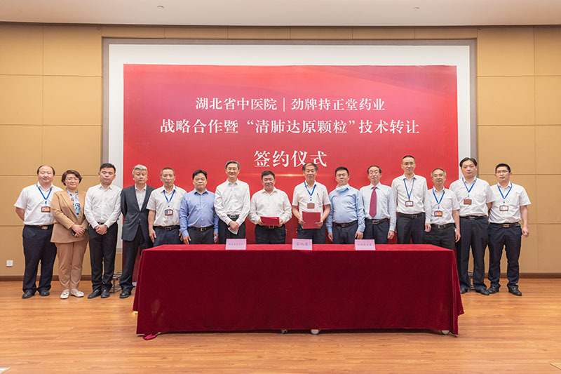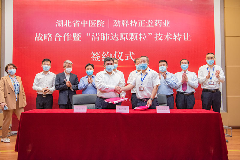 5月11日,湖北省中醫(yī)院與勁牌持正堂藥業(yè)戰(zhàn)略合作暨“清肺達(dá)原顆粒”技術(shù)轉(zhuǎn)讓簽約儀式,在勁牌持正堂藥業(yè)隆重舉行。湖北省中醫(yī)院黨委書記巴元明、院長何紹斌,黃石市衛(wèi)健委主任劉安定,勁牌公司董事長、總裁吳少勛,勁牌持正堂藥業(yè)總經(jīng)理李清安出席儀式。 來訪領(lǐng)導(dǎo)先后參觀了勁牌研究院、中藥提取車間,了解了公司數(shù)字提取工藝,和疫情期間中藥產(chǎn)品的生產(chǎn)捐贈情況。隨后在持正堂藥業(yè)展開座談會議。 會上,雙方對各自發(fā)展歷程、運(yùn)營狀況、技術(shù)強(qiáng)項及面臨困難進(jìn)行了深入溝通。 巴元明書記以“重大疫情”、“重大擔(dān)當(dāng)”、“重大機(jī)遇”、“重大合作”四個重大高度概括此次合作及其背景。他表示,在這次傳播速度最快、感染率最廣、防控難度最大的歷史性疫情面前,雙方都展現(xiàn)出了高度的責(zé)任與擔(dān)當(dāng);同時,中醫(yī)藥在本次疫情防控中彰顯的突出效果為中醫(yī)藥產(chǎn)業(yè)的發(fā)展創(chuàng)造了天時、地利、人和的重要機(jī)遇,期望以此次“清肺達(dá)原顆粒”臨床批件申報為起點(diǎn),與勁牌一起傳承精華,守正創(chuàng)新,攜手打造湖北中醫(yī)藥強(qiáng)省。 何紹斌院長表示,此次與勁牌的戰(zhàn)略合作,雙方目標(biāo)一致,互補(bǔ)性強(qiáng),可充分發(fā)揮湖北省中醫(yī)院的科研及臨床優(yōu)勢和勁牌的市場優(yōu)勢。此次合作基礎(chǔ)良好,前景光明。期望雙方加強(qiáng)溝通和交流,共同推進(jìn)戰(zhàn)略合作的深入開展。 會上,湖北省中醫(yī)院院長何紹斌與勁牌有限公司董事長吳少勛,及勁牌持正堂藥業(yè)總經(jīng)理李清安,分別簽訂了“湖北省中醫(yī)院與勁牌持正堂藥業(yè)有限公司共同振興發(fā)展湖北省中醫(yī)藥事業(yè)的戰(zhàn)略合作協(xié)議”和“‘清肺達(dá)原顆粒’技術(shù)轉(zhuǎn)讓與新藥臨床前研究合作協(xié)議”。 據(jù)了解,湖北省中藥資源豐富,中藥工業(yè)存在較大提升空間,湖北省中醫(yī)院作為省內(nèi)龍頭中醫(yī)院,與勁牌達(dá)成戰(zhàn)略合作,包括“積極合作開展茯苓等湖北省優(yōu)勢中藥材的種植、基礎(chǔ)研究及產(chǎn)業(yè)化推廣應(yīng)用”以及“共同推進(jìn)中藥配方顆粒與傳統(tǒng)飲片臨床等效性評價等工作的開展”,以推動湖北省中醫(yī)藥從種植、工業(yè)生產(chǎn)到臨床使用全產(chǎn)業(yè)鏈的發(fā)展,為將湖北打造為中醫(yī)藥強(qiáng)省助力。 清肺達(dá)原顆粒簡介:該方是在國醫(yī)大師梅國強(qiáng)教授的指導(dǎo)下,由巴元明等專家研制的組方(即湖北省中醫(yī)院“肺炎1號”),是唯一一個用于治療新型冠狀病毒肺炎的湖北省地方組方。已全面應(yīng)用于全省新型冠狀病毒感染肺炎疑似、臨床診斷病例及確診病例治療中。從當(dāng)前的臨床統(tǒng)計結(jié)果來看,“清肺達(dá)原顆粒”臨床治愈率達(dá)到了95.34%,療效顯著。除治療新型冠狀病毒肺炎之外,該方還可適于由病毒引起的甲流、乙流、禽流感等流行性感冒,具有較大的潛在開發(fā)價值。